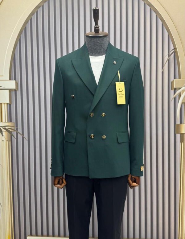 Design: Classic Double-Breasted 6-button front with elegant peak lapels.