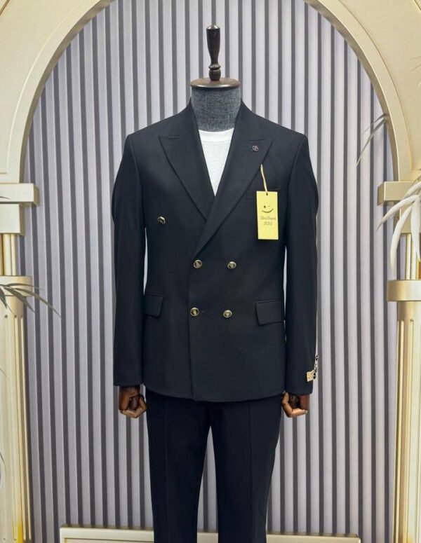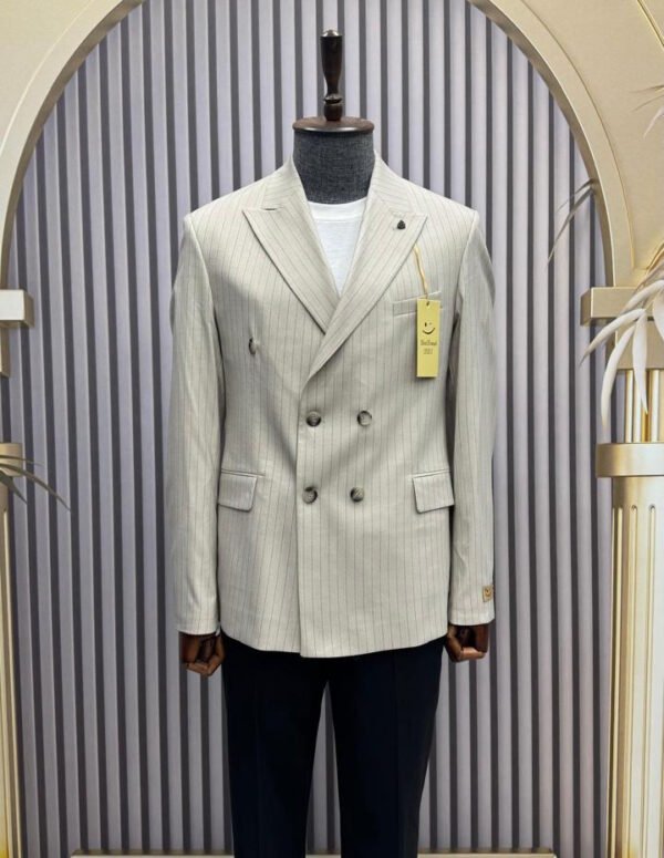 Redefine elegance with this masterfully crafted double-breasted blazer. Designed with a contemporary silhouette, it offers a structured look that enhances the shoulders while tapering at the waist for a sharp, confident profile.